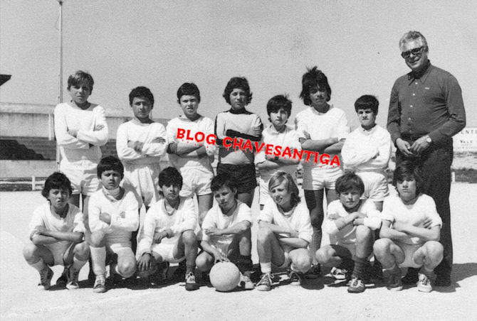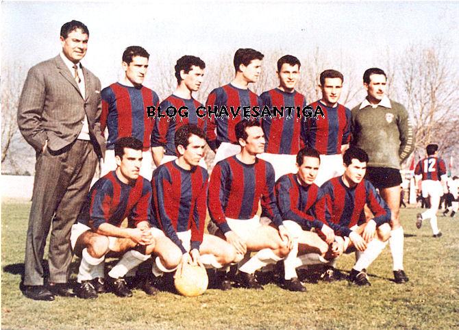 Época de 1958-59, jogador-treinador, é o segundo em cima, sentido, esq/drt.